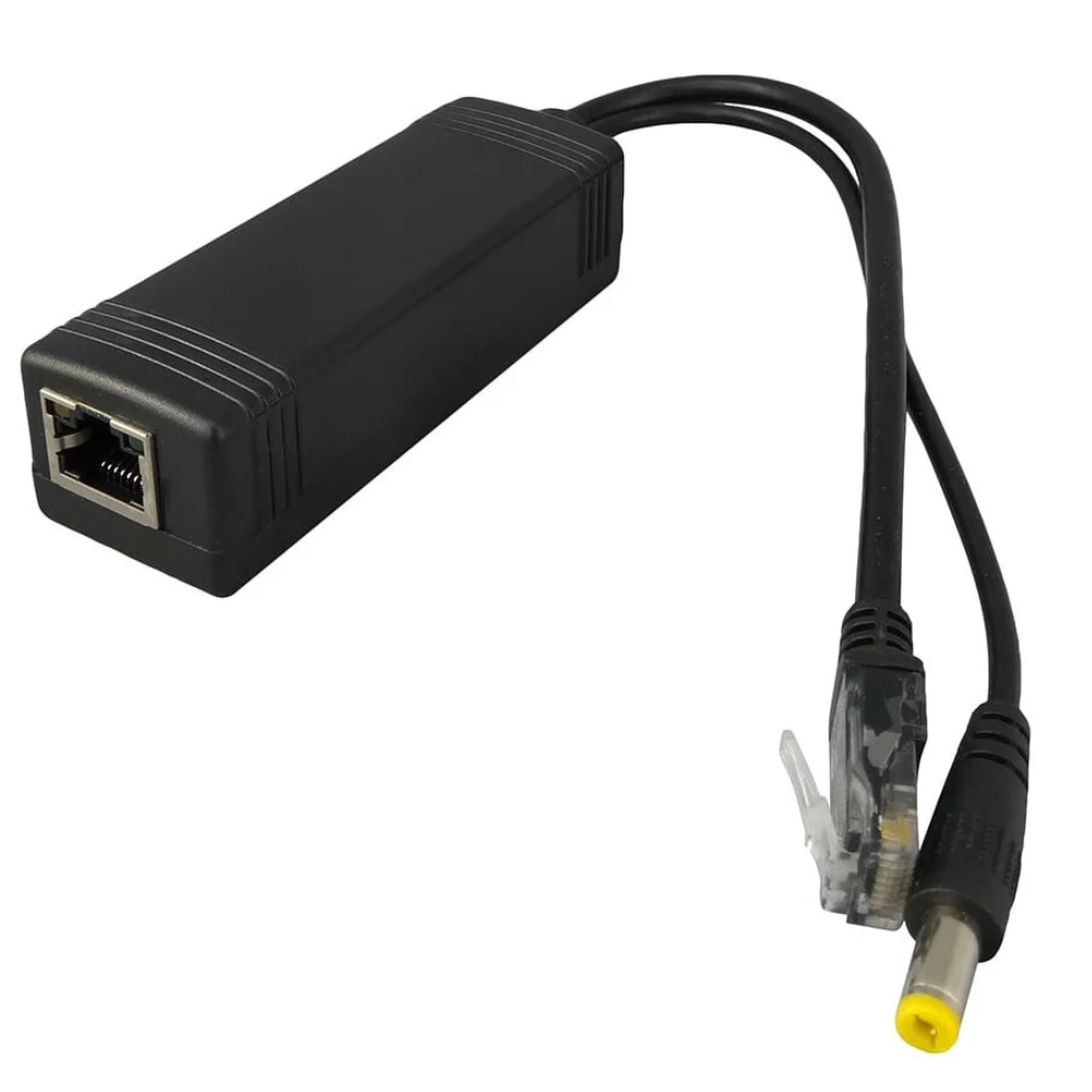 Одноканальный 10/100M IEEE802.3af PoE-сплиттер, который используется для разделения питания 48В(PoE) и данных, которые приходят на вход устройства по Ethernet-кабелю на данные (разъем RJ45) и питания для видеокамеры12В DC.