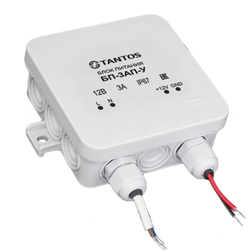 Блок питания 12В 3А в герметичном пластиковом корпусе предназначен для использования на открытом воздухе.