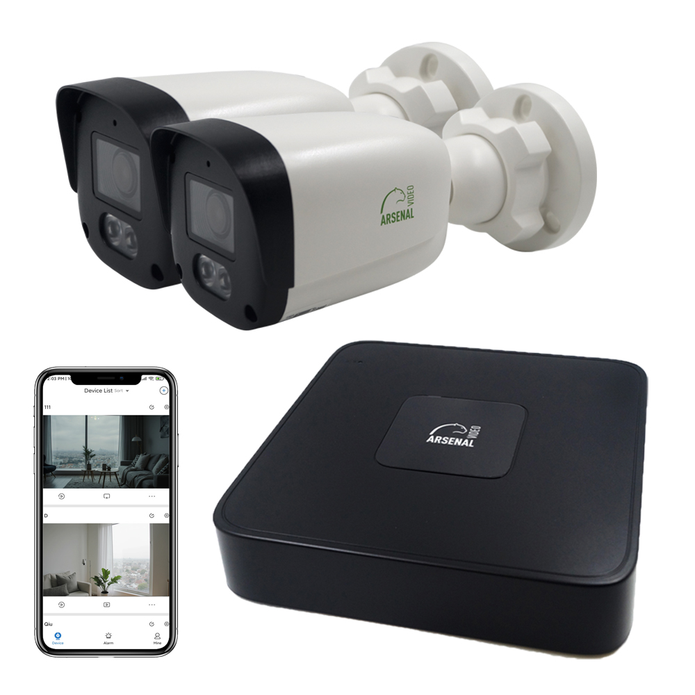 • Камеры 4 Мп: разрешение 2560×1440, ИК-подсветка 30 м, встроенный микрофон